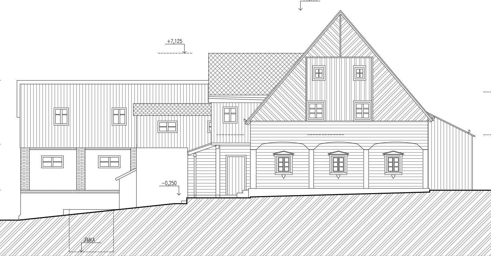 NZÚ - rodinný dům, jedno podzemní, dvě nadzemní podlaží, podkroví.